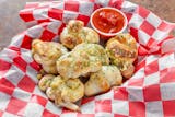 A classic snack, our garlic knots are strips of pizza dough tied in a knot, baked, and then topped with melted butter, garlic, and parsley. Supersized for your party. Place your order one day before.
